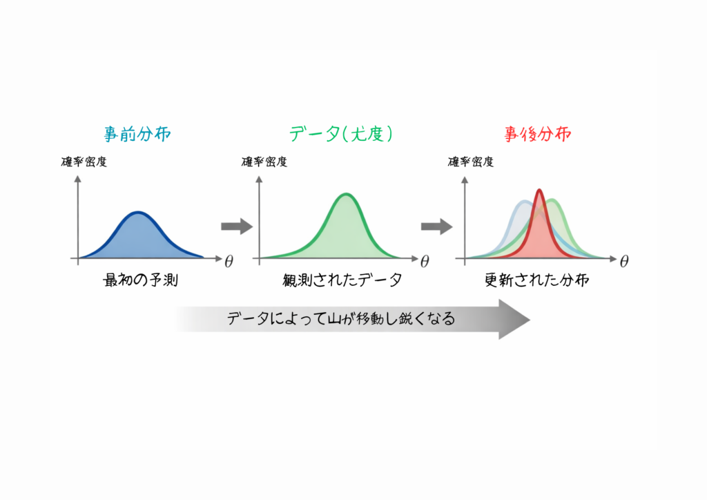 これ、単なる計算じゃなくて「データが増えるごとに、予測の精度が上がっていく」プロセスを数値で追えるってことなんですよね。
