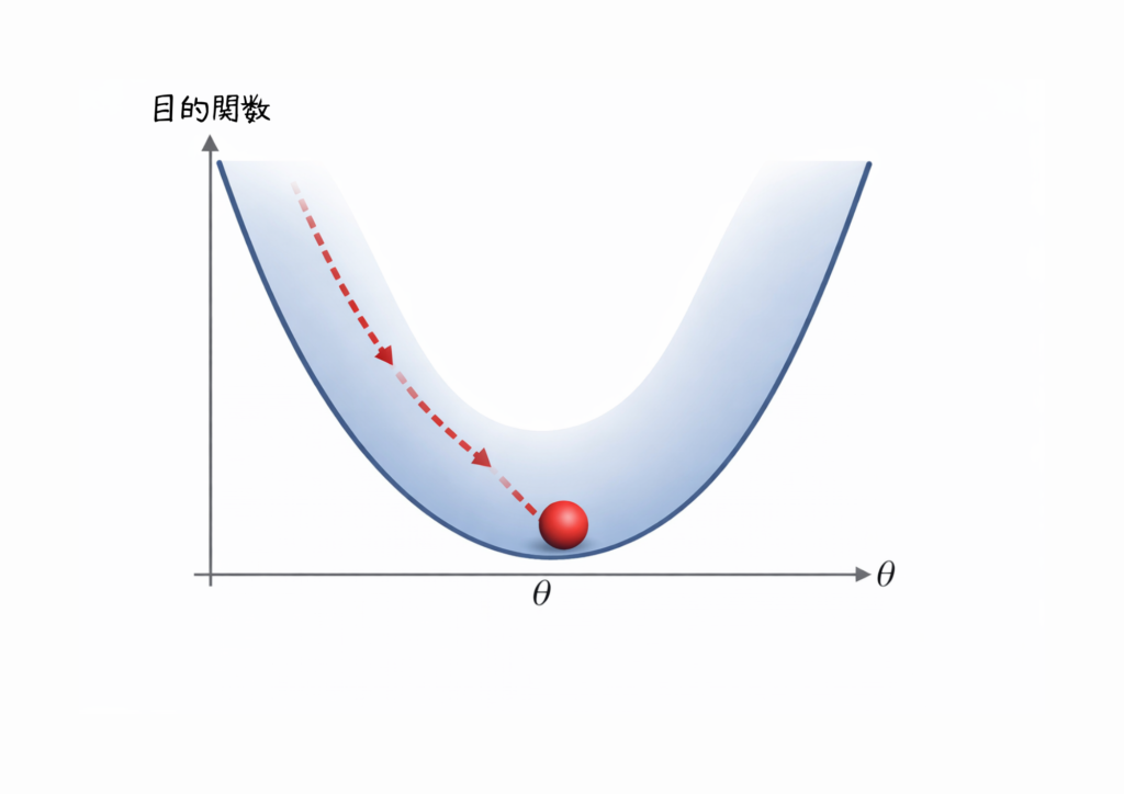最適化とは、誤差を最小にする(または目標を最大化する)ための調整方法のこと。